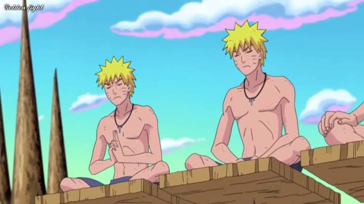 Naruto meditando com um de seus clones da sombras (originados do famoso kage bunshin no jutsu).